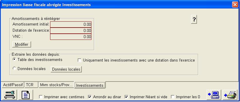 Si les données seront extraites depuis la table des investissements; les investissements cédés seront amortis jusqu'à la date de cession. Il est possible d'imprimer uniquement les investissements ayant une dotation non nulle durant l'exercice.