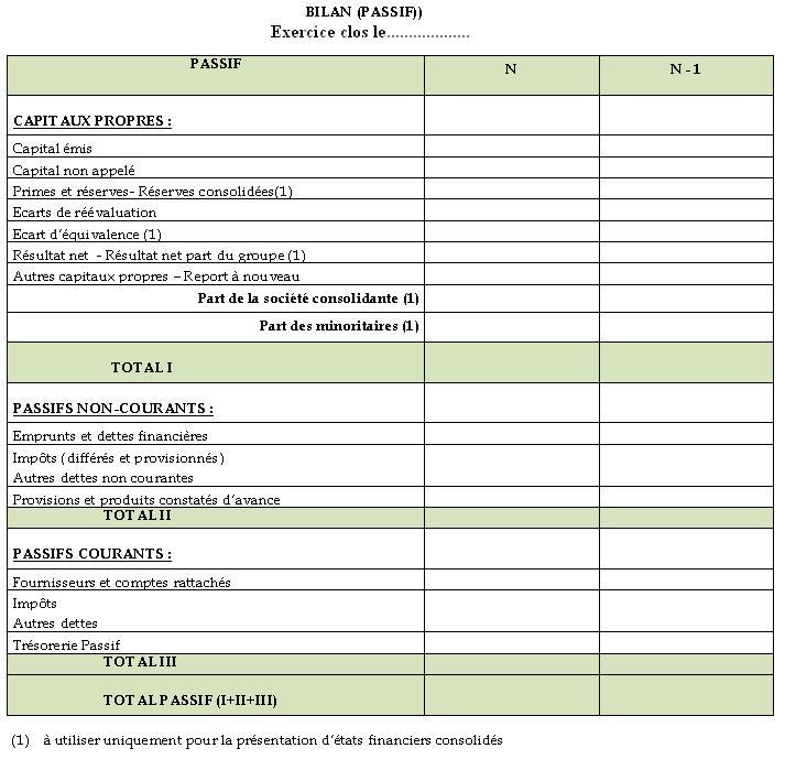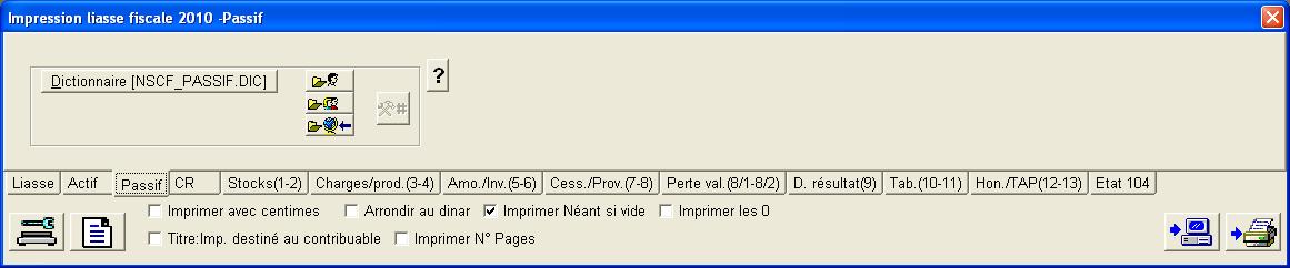 Le dictionnaire (Fichier NSCF_PASSIF.DIC) contient les formules de calcul des postes du passif.