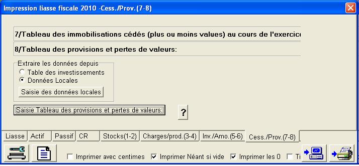 8/ Tableau des provisions et pertes de valeurs : Ce tableau est à saisir localement.