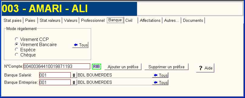 Pour pouvoir générer les virements bancaires sur fichier (selon le format standard diffusé début 2009 Voir Ici); Il est obligatoire de saisir le numéro de compte au format RIB.