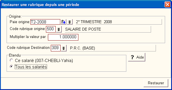 RESTAURER UNE RUBRIQUE DEPUIS UNE PAIE/PERIODE